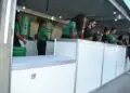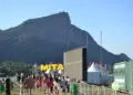 A plataforma para pessoas com deficiência também está bem pequena, o que torna difícil transitar por ela. Fico pensando que se tivesse chovido, a situação seria ainda pior. Seria importante considerar a ampliação dessa plataforma, levando em conta as necessidades de mobilidade dos participantes.