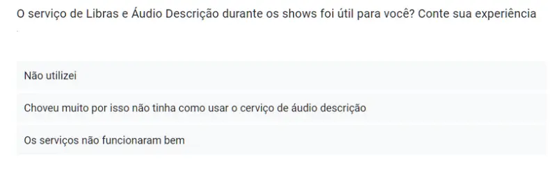 Em última análise, a opinião predominante entre os frequentadores do festival era que a Rock World deveria manter os morrinhos para uma melhor visualização do público. No entanto, é crucial considerar como essa decisão afeta o público PCD. A acessibilidade no The Town Festival, realizado no mesmo local, foi notavelmente superior.