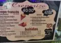 Sobremesas e Bebidas Para a sobremesa, o Mr. Dream Churros vende unidades a partir de R$ 22,00 (Doce de Leite/Brigadeiro) chegando a R$ 25,00 (Nutella). A hidratação segue preços tabelados na maioria dos pontos: