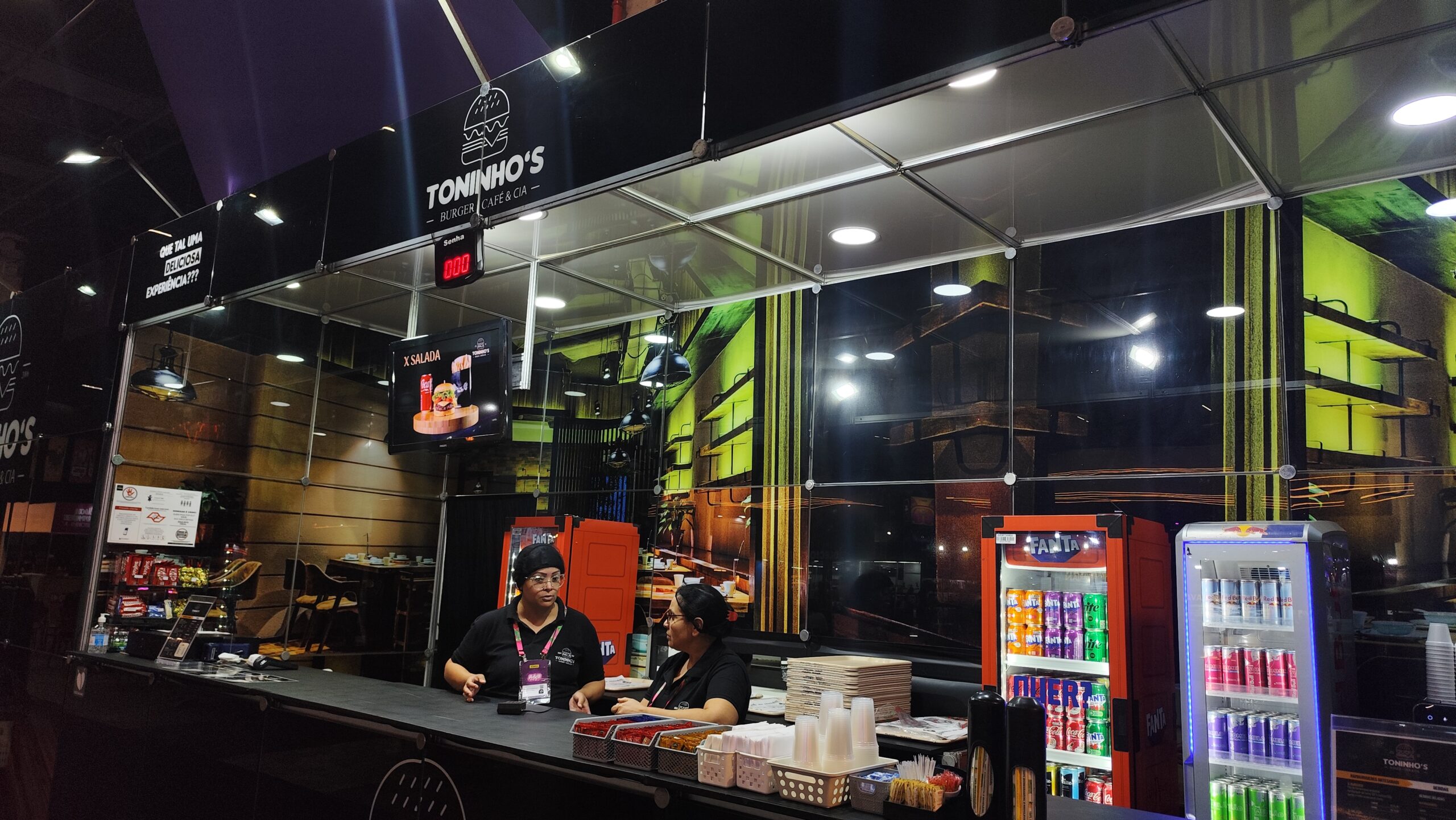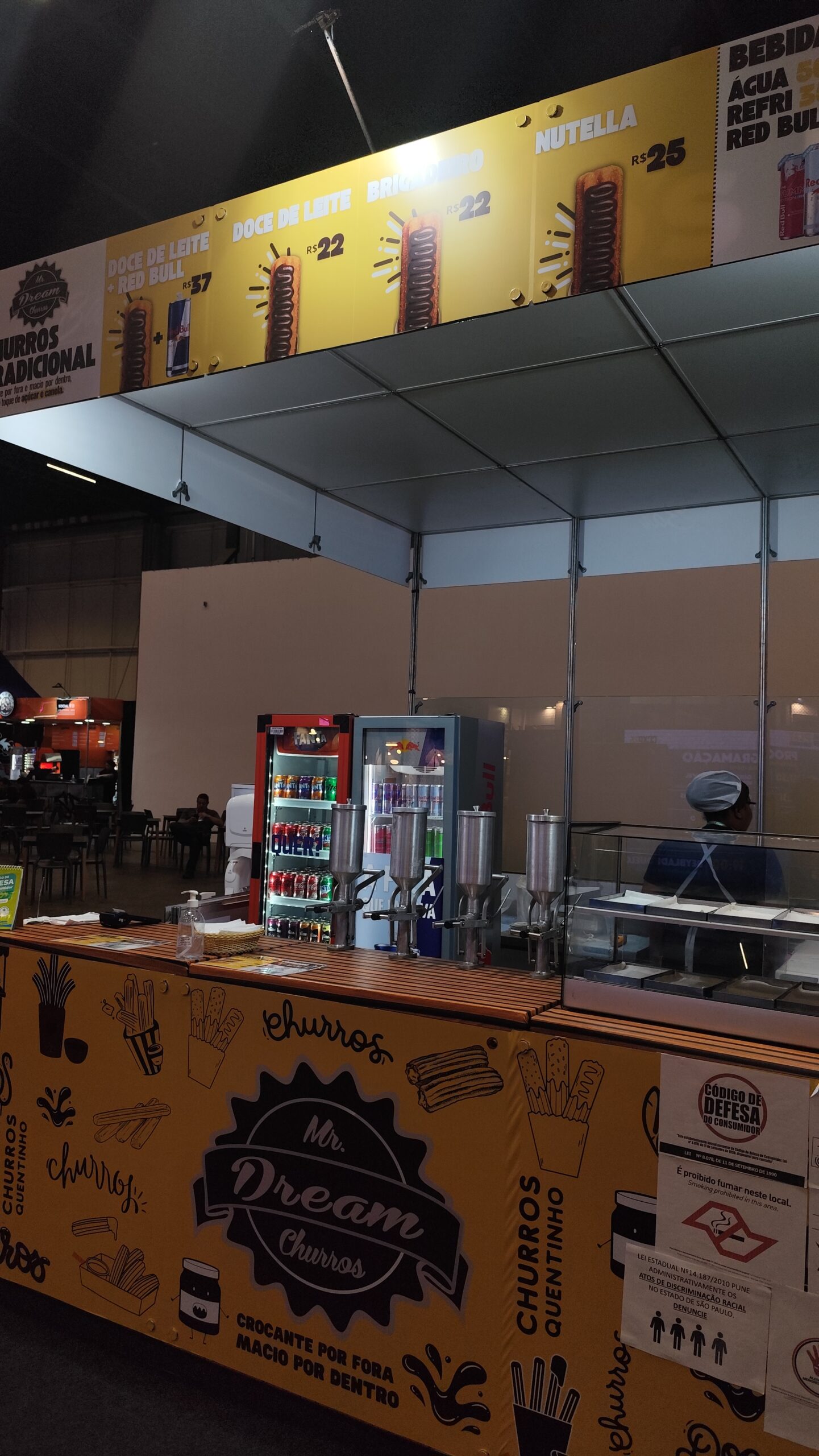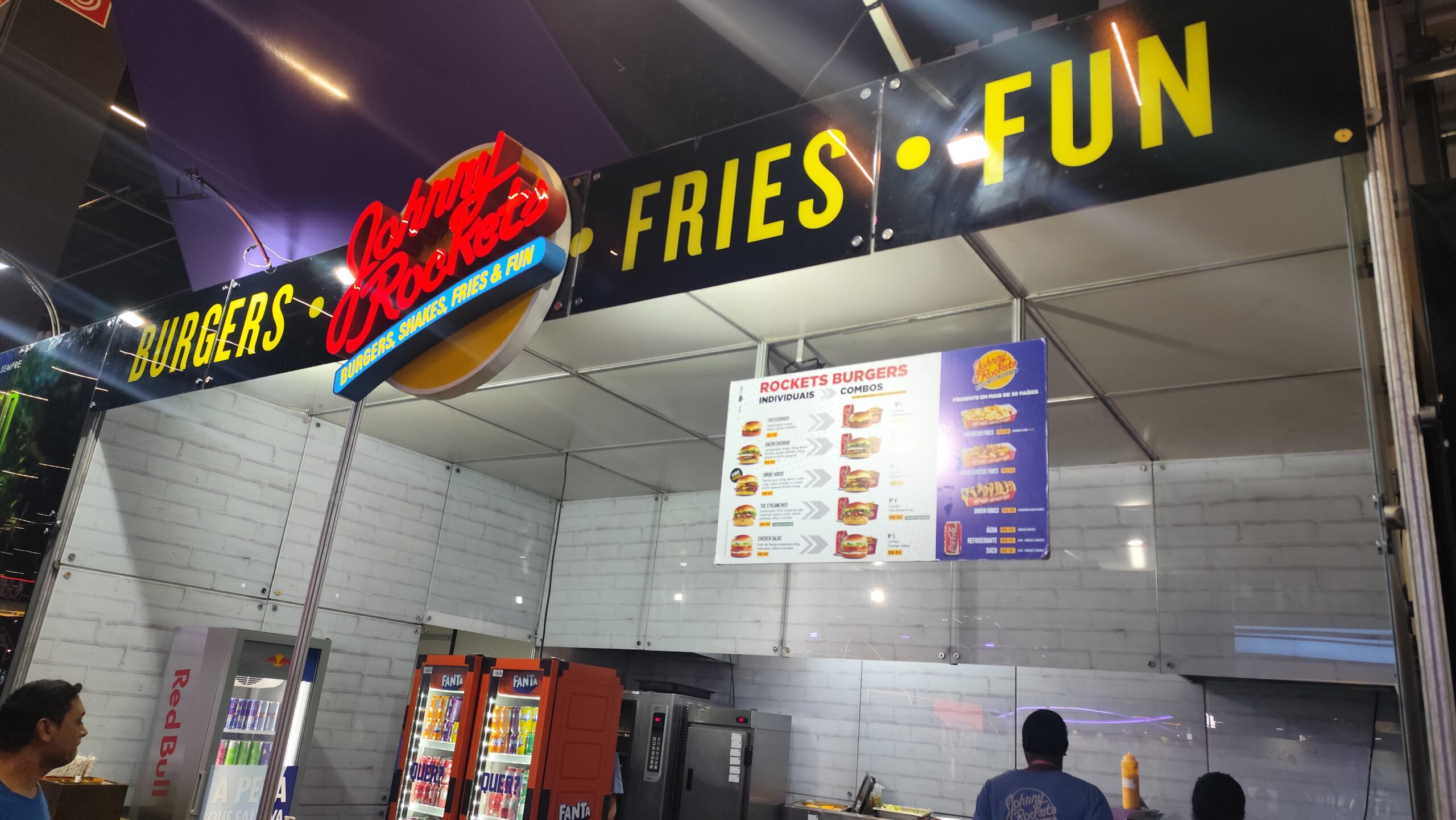 Para os visitantes, o pavilhão oferece um verdadeiro corredor gastronômico com marcas consagradas. Nossas lentes capturaram os preços e opções disponíveis para você planejar seu orçamento: