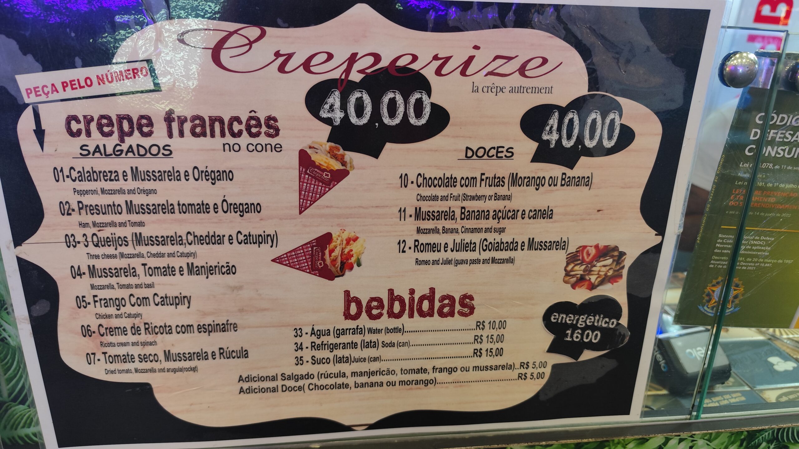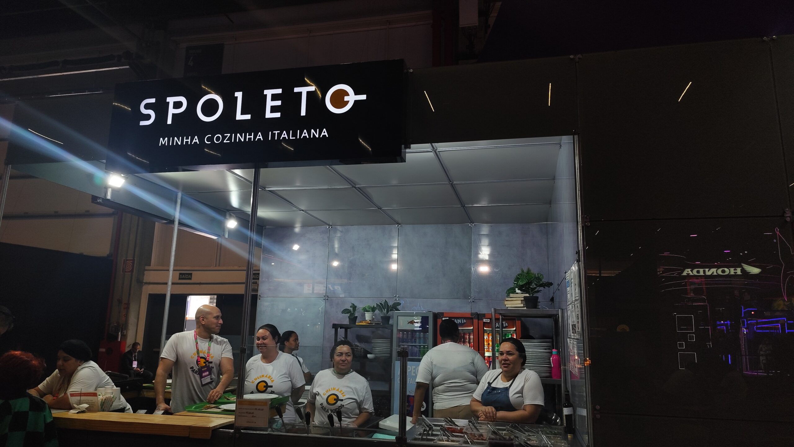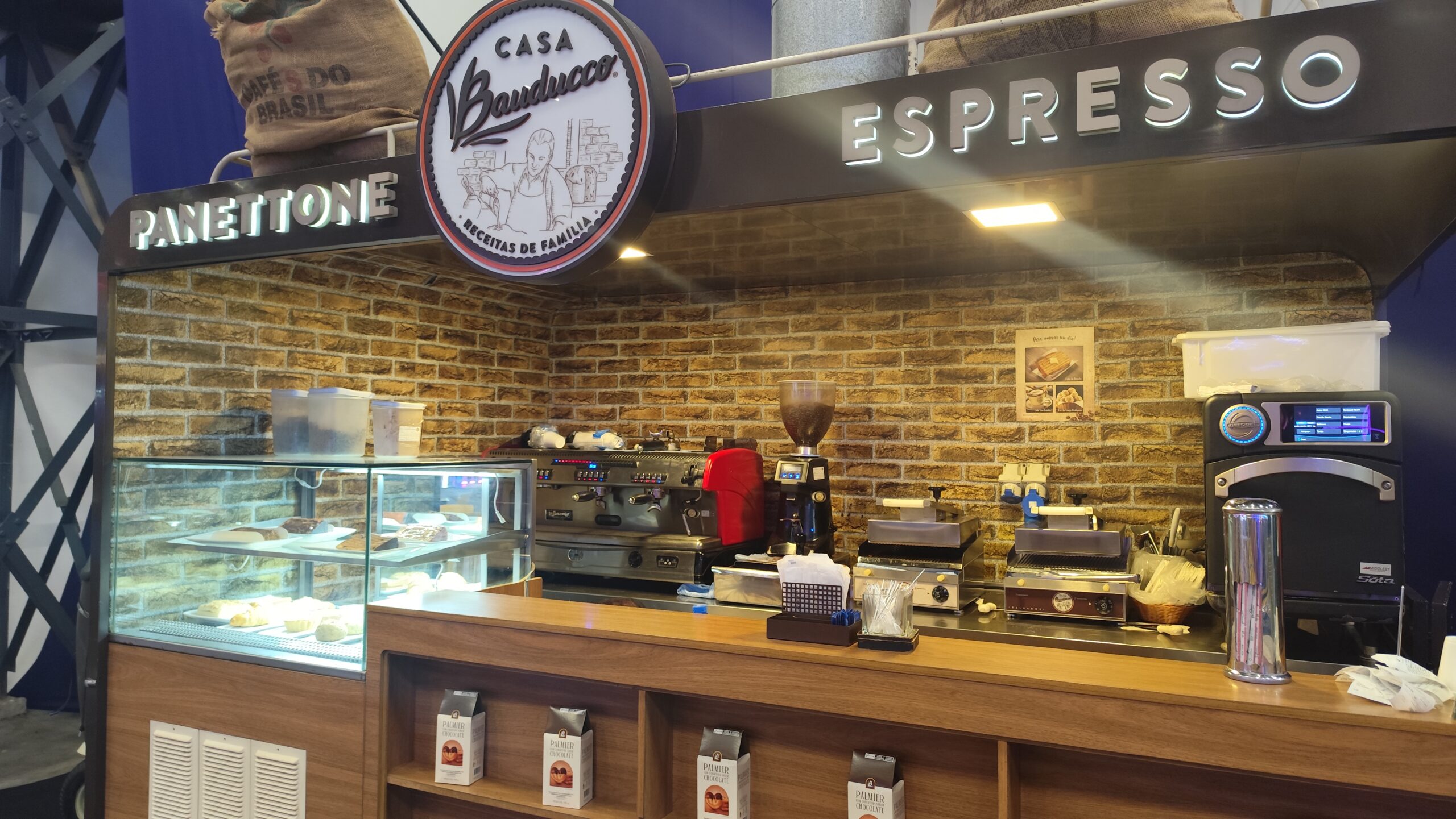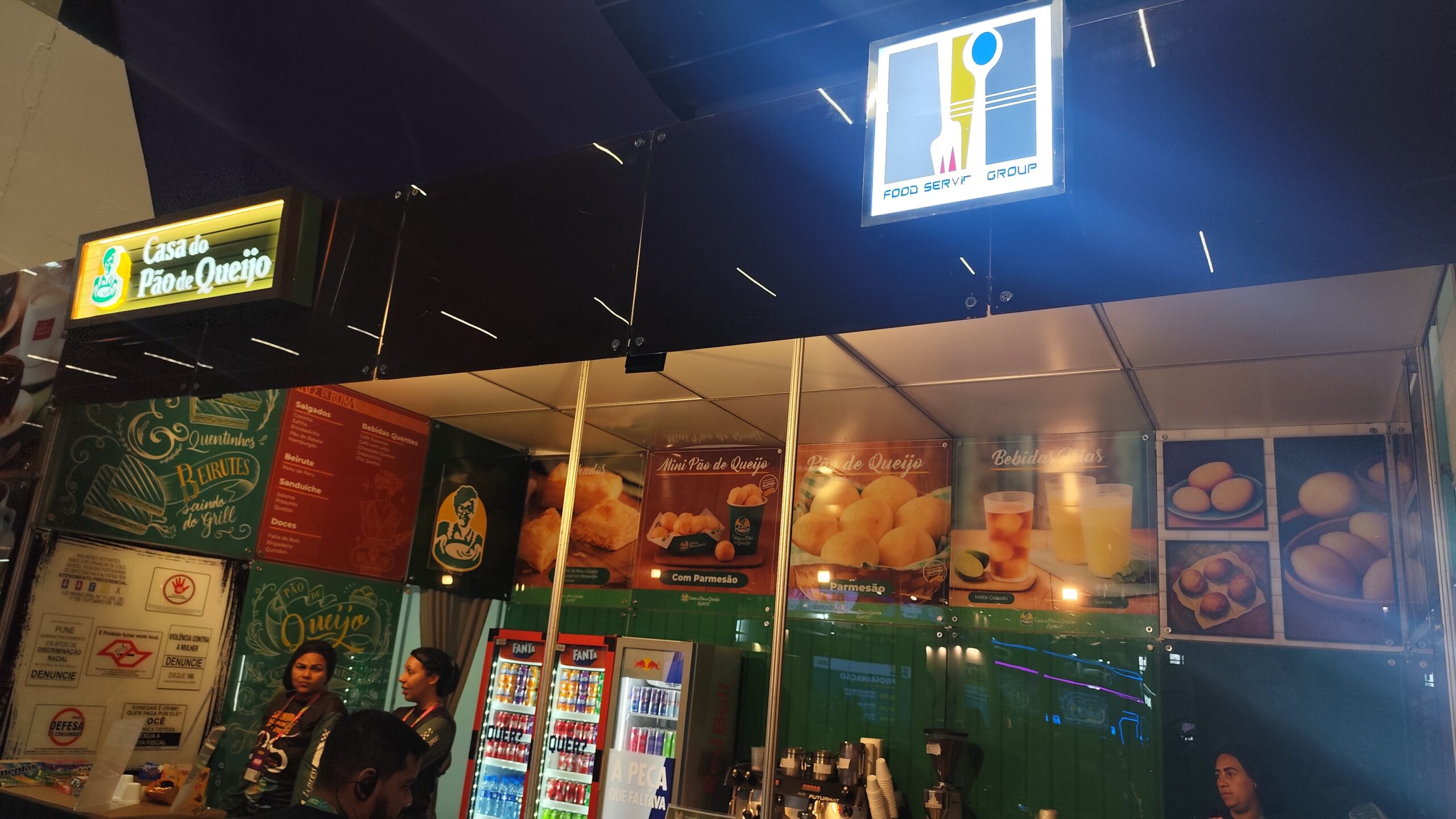 Para os visitantes, o pavilhão oferece um verdadeiro corredor gastronômico com marcas consagradas. Nossas lentes capturaram os preços e opções disponíveis para você planejar seu orçamento: